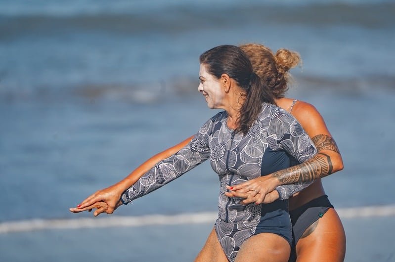 Mas o chamado quando vem do oceano é forte. Aos 35 anos, consciente dos meus traumas, e presente para mim, eu voltei! Com um filho de sete e uma nova fase de vida, redescobri no surf uma força arrebatadora. Não era só sobre pegar ondas, era sobre surfar a própria vida.